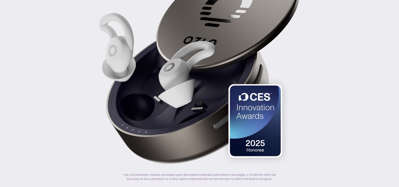 Ozlo Sleepbuds have been named a 2025 CES Innovation Awards® Honoree in the Headphones & Personal Audio Category! The CES Innovation Awards, organized annually by the Consumer Technology Association (CTA), honor outstanding design and engineering in consumer technology products and are selected by an independent panel of industry experts, including media members, designers, and engineers.